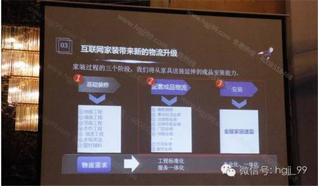 我愛我家網董事長 謝虹發表《互聯網家裝公司與定制家居的強強聯合》主題演講。供應鏈優勢中,定制品安裝平臺分為三步,設計測量,工廠生產,安裝-安裝平臺。此外,我愛我家網堅持更多的品牌,更好的產品企業理念。