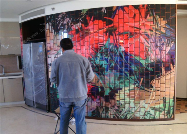 1155片小的彩繪板構成八大塊整板,這對我們的畫圖有著相當高的要求,可以用分毫不差來形容。工廠生產,到噴繪、到組裝、到運輸、到安裝、每個環節都需一步到位,任何一個環節出問題都有會影響整體效果,甚至前功盡棄。