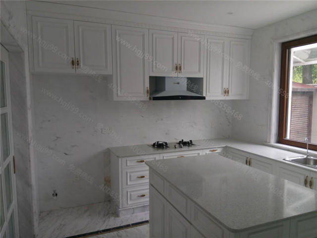 白色的歐式廚房就像是電視里常看到的場景一般,明朗的清晨,女主人在廚房里烹飪著可口的早餐,聯體櫥柜,觸手可及的距離,在使用中會覺得很方便。